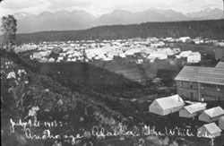 The city grew from its happenstance choice as a site for railroad construction to begin in 1914. The waters near Ship Creek were deep enough for barges and small ships to dock, and under the direction of Frederick Mears, it became a railroad-construction port for the Alaska Engineering Commission. The area near the mouth of Ship Creek, where the railroad headquarters was, quickly became a tent city. Anchorage formed at a time when proponents of Prohibition were gaining traction, and as part of an effort to stem the flow of the alcohol trade, at the direction of President Woodrow Wilson and with the symmetry of the US Army, a town site was mapped out on higher ground to the south of the tent city, with the condition that a person's land could be repossessed if caught breaking the alcohol laws.[23] Anchorage has been noted in the years since for its order and rigidity compared with other Alaska town sites.[12] In 1915, territorial governor John Franklin Alexander Strong encouraged residents to change the city's name to one that had "more significance and local associations".[26] In the summer of that year, residents held a vote to change the city's name; a plurality favored the name "Alaska City",[26] but the territorial government ultimately declined to change the city's name.[26] Anchorage was incorporated on November 23, 1920.[12]