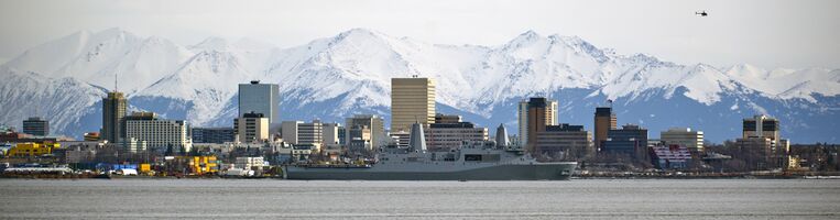 Downtown Anchorage in 2018 View from 5th Avenue Anchorage in 2006 Port of Anchorage in 1999 Anchorage Skyline with USS Anchorage departing | |