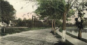 Fort Gatlin, as the Orlando area was once known, was established at what is now just south of the city limits by the 4th U.S. Artillery under the command of Ltc. Alexander C. W. Fanning on November 9, 1838, during the construction of a series of fortified encampments across Florida during the Second Seminole War.[6] The fort and surrounding area were named for John S. Gatlin, an Army physician who was killed in Dade's Massacre on December 28, 1835. The site of construction for Fort Gatlin, a defensible position with fresh water between three small lakes, was likely chosen because the location was on a main trail and is less than 250 yards from a nearby Council Oak tree, where Native Americans had traditionally met. King Phillip and Coacoochee frequented this area and the tree was alleged to be the place where the previous 1835 ambush that had killed over 100 soldiers had been planned.[7] When the U.S. military abandoned the fort in 1839, the surrounding community was built up by settlers.[6]