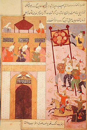 Timurlane's army besieging the city of Urgench in the 14th century.