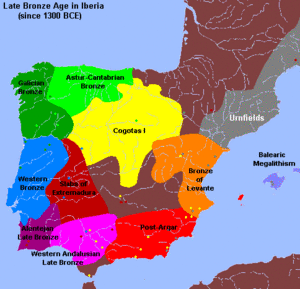 The transformation from Tartessian to Iberian culture was not sudden but gradual and was more marked in the East, where it begins in the 6th century BC, than in the south-west, where it is only noticeable since the 5th century BC and much more tenuous. A special case is the northeast where the Urnfield culture was Iberized but keeping some elements from the Indo-European substrate.[10]