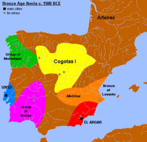 Since c. 1900 BC, the Bell Beaker phenomenon in Iberia shows a regionalization, with different styles being produced in the various regions: Palmela type in Portugal, Continental type in the plateau and Almerian type in Los Millares, among others.[10]