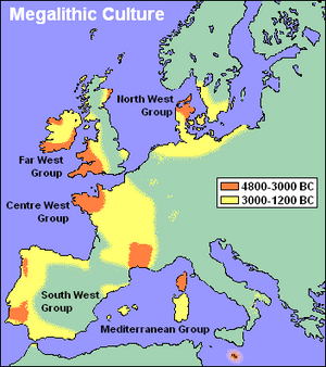 It is also the period of the great expansion of megalithism, with its associated collective burial practices. In the early Chalcolithic period this cultural phenomenon, maybe of religious undertones, expands along the Atlantic regions and also through the south of the peninsula (additionally it's also found in virtually all European Atlantic regions). In contrast, most of the interior and the Mediterranean regions remain refractary to this phenomenon.
