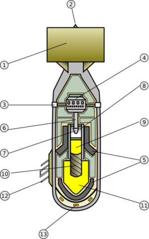 فقد أسقطت قنبلة يورانيوم تزن أكثر من 4.5 طن وأخذت اسما هو "ليتيل بوي" على هيروشيما في السادس من أغسطس سنة 1945. وقد اختير جسر أيووي وهو واحد من 81 جسرا تربط السبعة أفرع في دلتا نهر أوتا ليكون نقطة الهدف. وحدد مكان الصفر لأن يكون على ارتفاع 1980 قدما. وفي الساعة الثامنة وخمس عشر دقيقة تم إسقاط القنبلة من إينولا جيي. وقد أخطأت الهدف قليلا وسقطت على بعد 800 قدم منه. في الساعة الثامنة وست عشر دقيقة وفي مجرد ومضة سريعة كان 66000 قد قتلوا و69000 قد جرحوا بواسطة التفجير المتكون من 10 كيلو طن.