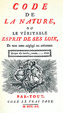 وفي نفس العام الذي صدر فيه كتاب روسو "مقال في أصل عدم المساواة" ظهر كتاب عنوانه "ناموس الطبيعة" لراديكالي مغمور لا نكاد نعرف عنه شيئاً غير اسمه الأخير، إذا استثنينا كتبه، وهو مورِلّي Morelly. ولا نخلط بينه وبين أندريه مورليه Morellet الذي التقينا به مشاركاً في تحرير الموسوعة. وقد بدأ مورلي بإيقاظ الإفهام بكتابه "رسالة في فضائل ملك عظيم" (1751) الذي صور ملكاً شيوعياً. وفي 1753 أضفى على حلمه الشاعرية بقصيدته "غرق الجز الطافية، أو الملحمة الملكية". وهنا نرى الملك الطيب، ربما بعد أن قرأ الكاتب مقال روسو الأول، يعود بشعبه إلى حياة بسيطة فطرية. وكان خير عرض للمثال الشيوعي وأكمله كتاب موريللي "ناموس الطبيعة" (1755-60) وقد نسبه الكثيرون إلى ديدرو، وصرح المركيز دارجانسون بأنه يفوق كتاب مونتسكو "روح الشرائع" (1748). وقد ذهب مورلي، كما ذهب روسو، إلى أن الإنسان خير بطبعه وإلى أن غرائزه الاجتماعية تحمله على السلوك الطيب، وأن القوانين أفسدته بتقرير الملكية الخاصة وحمايتها. وامتدح المسيحية لميلها إلى الشيوعية، وأسف لأن الكنيسة أقرت الملكية، فإقامة الملكية الخاصة أورثت البشر "الغرور، والحمق، والكبرياء، والجشع، واللؤم، والنفاق، والشر..وكل شيء شرير ينتهي إلى هذا العنصر الخفي المؤذي، وأعني به شهوة التملك(56)". ثم ينتهي السفسطائيون إلى أن طبيعة البشر تجعل الشيوعية ضرباً من المحال، في حين إن الذي حدث في التتابع الواقعي للأحداث هو أن انتهاك الشيوعية هو الذي أفسد الفضائل الفطرية للإنسان. ولولا الجشع والأنانية، والمزاحمات، والأحقاد التي ولدتها الملكية الخاصة لعاش الناس معاً في أخوة مسالمة متعاونة.