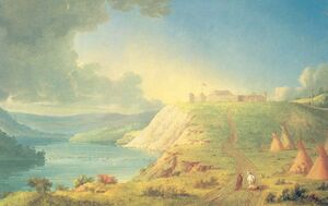 By 1795, Fort Edmonton was established on the river's north bank as a major trading post for the HBC, near the mouth of the Sturgeon River close to present-day Fort Saskatchewan.[48] Fort Edmonton was built within "musket-shot range" of the rival NWC's Fort Augustus.[31] Although both forts were initially successful, declines in beaver pelt hauls and firewood stocks forced both HBC and NWC to move their forts upstream.[31]