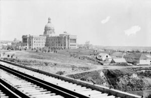 Incorporated as a town in 1892 with a population of 700 and then as a city in 1904 with a population of 8,350,[54] Edmonton became the capital of Alberta when the province was formed a year later, on September 1, 1905.[55] In November 1905, the Canadian Northern Railway (CNR) arrived in Edmonton, accelerating growth.[56]