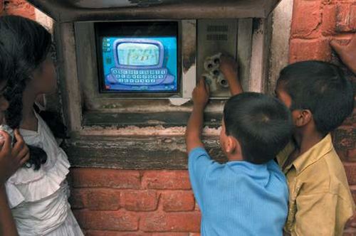 ومع ذلك فقد كشفت زيارتي لواحد من أكشاك نيودلهي عن صورة مختلفة. فنادرا ما كان الاتصال بالإنترنت قائما؛ كما أن هندسة الكشك ـ المقامة على أساس حائط بدلا من غرفة ـ جعلت التدريب أو التعاون عسيرا. ومن ناحية ثانية فإن لمعظم الجماعات الفقيرة في نيودلهي منظمات تُعنى بالأطفال وكان بإمكانها القيام بالتدريب في مركز حاسوبي من نوع مختلف؛ لكن مشاركة هذه المنظمات لم تلتمس ولم يُرحب بها. وخلال الأشهر التسعة التي استغرقتها التجربة تعلم الأطفال بالفعل كيفية تشغيل عصا التوجيه والأزرار لكن من دون برامج تعليمية؛ ومع كون البرامج مكتوبة بالإنكليزية بشكل رئيسي وليس بالهندية، كان الأطفال في معظم الوقت ـ كما قد يتوقع المرء ـ يلعبون ويستخدمون برامج الألوان للطلاء.