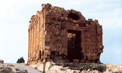 أهمُّ ما تبقّى من هذه المدينة حُجرة التمثال، وقد بُنيت من الحجارة الكلسية المشذّبة، ويقع مدخلها من جهة الشرق، و يعلوه ساكف مزخرف lintel، فوقه قوسٌ نصف دائري مزخرفٌ أيضاً، وعلى يمين الداخل ما يشبه البرج، في جوفه درج ينتهي إلى سقف حجرة التمثال، إِلاّ أَنَّ هذا البرج لم يسلم من عوادي الزمن ولم يعد له وجود.