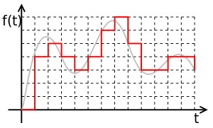 إذا كان سيتم تمثيل الإشارة كتسلسل من الأرقام ، فمن المستحيل الحفاظ على الدقة الصحيحة - يجب أن يحتوي كل رقم في التسلسل على عدد محدود من الأرقام. ونتيجة لذلك ، تنتمي قيم هذه الإشارة إلى مجموعة محدودة ؛ وبعبارة أخرى ، هو الكمي. التكمية هي عملية تحويل إشارة صوتية تناظرية مستمرة إلى إشارة رقمية بقيم رقمية منفصلة.