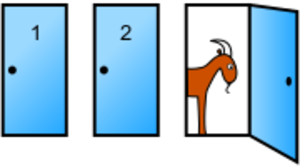 يجب على المضيف فتح الباب ذو الرقم 2 | المضيف يفتح أحد الأبواب عشوائياً التي يوجد خلفها الماعز | يجب على المضيف فتح الباب ذو الرقم 3 | |