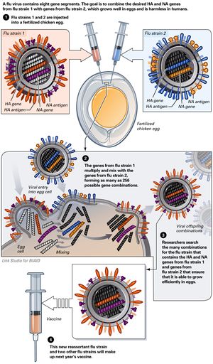 تحدث إعادة التشكيل عند إصابة إنسان أو حيوان بنوعين مختلفين من فيروس الإنفلونزا فينتج فيروس خليط بين الإثنين. وهذه العملية كانت سبباً لعدد من أوبئة الإنفلونزا كإنفلونزا هونگ كونگ وإنفلونزا الخنازير. ففي إنفلونزا الخنازير وجد أن الفيروس المسبب للمرض عبارة عن خليط بين ثلاث فيروسات واحد يصيب الإنسان وآخر يصيب الطيور وثالث يصيب الخنازير.