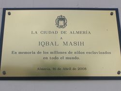 : CS1 maint: unrecognized language (link) - ^ Ryan, Timothy (1995). "Iqbal Masih's Life -- a Call To Human Rights Vigilance" (in English). The Christian Science Monitor. Retrieved 10 March 2018.