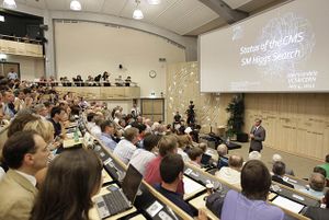 كان رواد الفيزياء متحلقون لمشاهدة إعلان سيرن في سويسرا في نهاية 40 عاما من السعي.