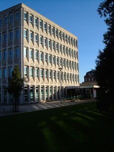 Large areas of the city centre were rebuilt in the 1950s, with little attempt to preserve or restore historic buildings. The street plan was altered in an attempt to improve traffic circulation, and former landmarks like St Lawrence, the College of the Vicars Choral, and Bedford circus disappeared. The modern architecture stands in sharp contrast to the red sandstone of buildings that survived the Blitz.[60] One notable exception was The House That Moved, which is one of Europe's oldest private residences,[61] which was due for demolition for a new relief road, but was saved after the intervention of the Ministry of Works, and was moved to a new location.[62][63]