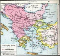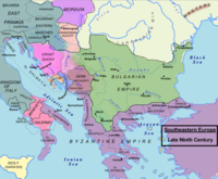 In Southeastern and Eastern Europe, during 917, the Eastern Roman Empire, sometimes called the Byzantine Empire, was forced to recognize the Imperial title of Bulgarian ruler Simeon the Great, who were then called Tsar, the first ruler to hold that precise imperial title. The Bulgarian Empire, established in the region in 680-681, remained a major power in Southeast Europe until its fall in the late 14th century. Bulgaria gradually reached its cultural and territorial apogee in the 9th century and early 10th century under Prince Boris I and Simeon I, when its early Christianization in 864 allowed it to develop into the cultural and literary center of Slavic Europe, as well as one of the largest states in Europe, thus the period is considered the Golden Age of medieval Bulgarian culture. Major events included the development of the Cyrillic script at the Preslav Literary School, declared official in 893, and the establishment of the liturgy in Old Church Slavonic, also called Old Bulgarian.[36][37][38]