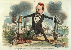 كارتون لكاستلار نُشر في La Madeja Política، رسم توماس پدرو پدرت، نوفمبر 1873.