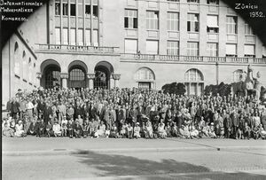 In September of the same year, Noether delivered a plenary address (großer Vortrag) on "Hyper-complex systems in their relations to commutative algebra and to number theory" at the International Congress of Mathematicians in Zürich. The congress was attended by 800 people, including Noether's colleagues Hermann Weyl, Edmund Landau, and Wolfgang Krull. There were 420 official participants and twenty-one plenary addresses presented. Apparently, Noether's prominent speaking position was a recognition of the importance of her contributions to mathematics. The 1932 congress is sometimes described as the high point of her career.[146][149]