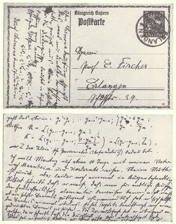 تقاعد گوردان عام 1910،[38] وخلفه إرهارد شميت ثم إرنست فيشر في 1911.[39] وكان فيشر مؤثراً مهماً على نوتر، إذ عرّفها بأعمال داڤيد هيلبرت.[40][41] وقد جمعتها به علاقة علمية نشطة؛ إذ كانت ترسل له بطاقات بريدية تواصل فيها أفكارها.[42][43]