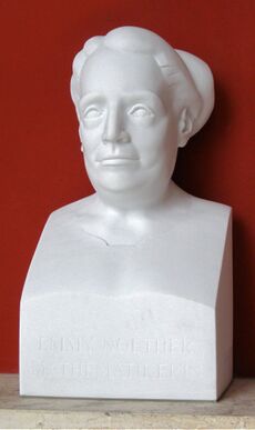 A few days after Noether's death, her friends and associates at Bryn Mawr held a small memorial service at College President Park's house.[171] Hermann Weyl and Richard Brauer both traveled from Princeton and delivered eulogies.[172] In the months that followed, written tributes began to appear around the globe: Albert Einstein joined van der Waerden, Weyl, and Pavel Alexandrov in paying their respects.[5] Her body was cremated and the ashes interred under the walkway around the cloisters of the Old Library at Bryn Mawr.[173][174]