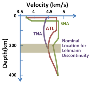 - ^ Figure patterned after Don L Anderson (2007). New Theory of the Earth (2nd ed.). Cambridge University Press. p. 102, Figure 8.6. ISBN 978-0-521-84959-3.; Original figure attributed to Grand and Helmberger (1984)