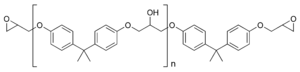 A product comprising a few repeat units (n = 1 to 2) is a viscous, clear liquid; this is called a liquid epoxy resin. A product comprising more repeating units (n = 2 to 30) is at room temperature a colorless solid, which is correspondingly referred to as solid epoxy resin.