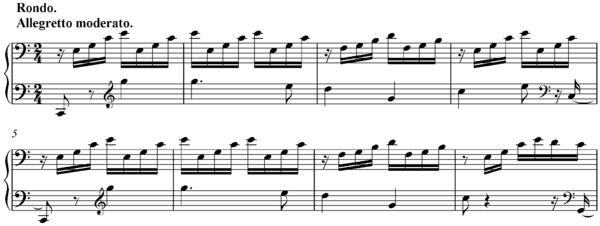 "Meter may be defined as a regular, recurring pattern of strong and weak beats. This recurring pattern of durations is identified at the beginning of a composition by a meter signature (time signature). ... Although meter is generally indicated by time signatures, it is important to realize that meter is not simply a matter of notation".[11] A definition of musical metre requires the possibility of identifying a repeating pattern of accented pulses – a "pulse-group" – which corresponds to the foot in poetry.[بحاجة لمصدر] Frequently a pulse-group can be identified by taking the accented beat as the first pulse in the group and counting the pulses until the next accent.[12][1]