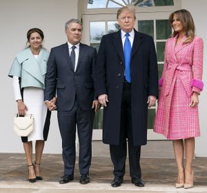 دوكى وقرينته ماريا جوليانا رويوز برفقة الرئيس الأمريكي دونالد ترمپ والسيدة الأولى ملانيا ترمپ.