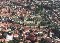 Aerial photography of the Castle and a part of the Downtown, Tetemvár, Almagyar and Cifra hóstya.