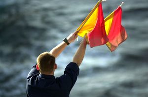 تم اعتماد الإشارات واستخدامها على نطاق واسع (مع استبدال الأعلام باليد للأذرع الميكانيكية لـ غالق إشارة سيمافور في العالم البحري في القرن التاسع عشر. لا تزال تُستخدم أثناء التجديد الجاري في البحر وهي مقبولة للاتصالات في حالات الطوارئ في وضح النهار أو ، باستخدام العصا المضاءة بدلاً من الأعلام ، ليلاً.