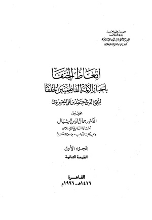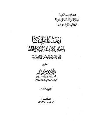 اتعاظ الحنفا بأخبار الأئمة الفاطميين كتاب من تأليف أبو العباس تقي الدين أحمد بن علي ابن عبد القادر بن محمد العبيدي المقريزي مؤرخ مصري اشتهر بالمقريزي اتعاظ الحنفا بأخبار الأئمة الفاطميين الخلفا