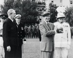 Eisenhower and Macmillan agreed to form a study group headed by Sir Richard Powell, the Permanent Secretary to the Ministry of Defence, and Donald A. Quarles, the United States Deputy Secretary of Defense, to consider how the deployment of IRBMs to Britain might be expedited.[57] Another study group, under Strauss and Sir Edwin Plowden, the head of the UKAEA, would investigate nuclear co-operation and the exchange of nuclear information.[58] The personal relationship developed between Plowden and Strauss would be crucial in converting the latter over to the idea of providing information to Britain.[61]