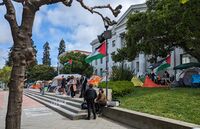نصب الطلاب المتظاهرون أكثر من اثنتي عشرة خيمة في سپرول پلازا في جامعة كاليفورنيا-بركلي، قائلين إنهم سيبقون حتى تقاطع الجامعة الشركات المشاركة في الحرب. وتعهد مسؤولو الجامعة بإبعاد المتظاهرين الذين نصبوا الخيام أو "عطلوا النشاط الأكاديمي" بالقوة.[41]
