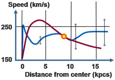 يعتمد نظام احداثيات المجرة على اعتبار الشمس هي نقطة الصفر. وتدور الشمس في فلك دائري حول مركز المجرة يسمى "دائرة الشمس " بعكس دوران الساعة (مع اعتبار الرؤية من القطب الشمالي للمجرة) وهي تبعد عن المركز نحو 8 فرسخ فلكي وتدور بسرعة 220 كيلومتر في الثانية.[5] وهذا يعطي سرعة دورة المجرة حول مركزها (عند موقع الشمس) بنحو 200 مليون سنة للدورة الواحدة. وتدور المجرة في مناطق أخرى منها بسرعات مختلفة تعتمد على بعد المنطقة من مركز المجرة. ولوحظ عمد تطابق السرعة المحسوبة لدوران المجرة مع السرعة كما هو مبين في منحنى دوران المجرة. ويعزى ذلك الاختلاف إلى المادة المظلمة ، كما يفكر العلماء في أسباب أخرى لعدم التطابق مثل تعديل في حسابات نيوتن للجاذبية.
