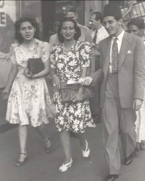 إحسان وزوجته لولا وأخته آمال زكي طليمات.
