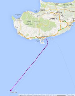 كاستورونه في ليماسول، 2 مايو 2014، حسب موقع marinetraffic.com الذي يرصد موقع السفن كل خمس دقائق.