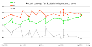 | 24–31 أغسطس | TNS BMRB/The Herald | 1,007 | 39% | 38% | 23% | 1% | ||