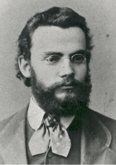The Estonian national awakening began in the 1850s as several leading figures started promoting an Estonian national identity among the general populace. Widespread farm buyouts by Estonians and the resulting rapidly growing class of land-owning farmers provided the economic basis for the formation of this new "Estonian identity". In 1857 Johann Voldemar Jannsen started publishing the first Estonian language daily newspaper and began popularising the denomination of oneself as eestlane (Estonian).[103] Schoolmaster Carl Robert Jakobson and clergyman Jakob Hurt became leading figures in a national movement, encouraging Estonian farmers to take pride in their ethnic Estonian identity.[104] The first nationwide movements formed, such as a campaign to establish the Estonian language Alexander School, the founding of the Society of Estonian Literati and the Estonian Students' Society, and the first national song festival, held in 1869 in Tartu.[105][106][107] Linguistic reforms helped to develop the Estonian language.[108] The national epic Kalevipoeg was published in 1862, and 1870 saw the first performances of Estonian theatre.[109][110] In 1878 a major split happened in the national movement. The moderate wing led by Hurt focused on development of culture and Estonian education, while the radical wing led by Jakobson started demanding increased political and economical rights.[106]