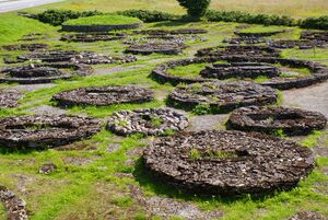 The Bronze Age started around 1800 BC, and saw the establishment of the first hill fort settlements.[28] A transition from hunter-fisher subsistence to single-farm-based settlement started around 1000 BC, and was complete by the beginning of the Iron Age around 500 BC.[23][29] The large amount of bronze objects indicate the existence of active communication with Scandinavian and Germanic tribes.[30]