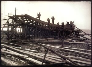 The Estonian coast was a trade hub located on a major waterway, making it both a target and a starting point for many raids. Coastal Estonians, particularly Oeselians from Saaremaa, adopted a Viking lifestyle.[38][39] Several Scandinavian sagas referred to major confrontations with Estonians, notably when 7th century "Estonian Vikings" defeated and killed Ingvar Harra, the King of Swedes.[40][41] The mid-8th century Salme ship burials have been proposed as the beginning of the European Viking Age.[42][43]