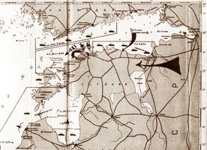 On 28 November 1918 Soviet Russia invaded, starting the Estonian War of Independence.[117] The Red Army came within 30 km of Tallinn, but in January 1919, the Estonian Army, led by Johan Laidoner, went on a counter-offensive, ejecting Bolshevik forces from Estonia within a few months. Renewed Soviet attacks failed, and in spring, the Estonian army, in co-operation with White Russian forces, advanced into Russia and Latvia.[118][119] In June 1919, Estonia defeated the German Landeswehr which had attempted to dominate Latvia, restoring power to the government of Kārlis Ulmanis there. After the collapse of the White Russian forces, the Red Army launched a major offensive against Narva in late 1919, but failed to achieve a breakthrough. On 2 February 1920, the Tartu Peace Treaty was signed by Estonia and Soviet Russia, with the latter pledging to permanently give up all sovereign claims to Estonia.[118][120]