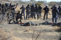 قوات الشرطة تطلق الرصاص على عمال المناجم المضربين في ماريكانا، أغسطس 2012.