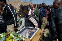 تشييع جنازة العمال المقتولون أثناء اضراب منجم ماريكانا أغسطس 2012.[29]