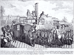 اعدام لويس السادس عشر بالمقصلة في 21 يناير 1793 في قصر الثورة ("ميدان الثورة"، ميدان لويس السادس عشر سابقا، وأعيد تسميته پالاس دي كونراد عام 1795) في باريس. وكان هذا من أبرز أحداث الثورة الفرنسية. بعد أحداث 10 أغسطس 1792، والتي شهدت على سقوط الحكم الملكي بعد هجوم الثوار على توليري، تم القبض على لويس السادس عشر، وأودع سجن تمپل بصحبة عائلته، وحوكم بتهمة الخيانة العظمى أمام المؤتمر الوطني وأدين وحُكِم عليه بالإعدام بأغلبية قليلة. اعدامه جعله أول ضحية لعهد الرعب. زوجته ماري أنطوانت أُعدِمت بالمقصلة في 16 اكتوبر، من نفس العام.