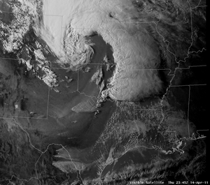 اجتاح اعصار لمدة ثلاثة أيام جنوب الولايات المتحدة من 14 إلى 16 أبريل 2011، وتسبب في تدمير شديد على مدار الثلاثة أيام.