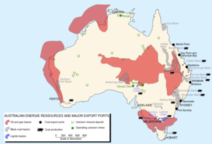 يهيمن قطاع الخدمات على الاقتصاد الأسترالي، حيث يشارك بنسبة 61.1% من ن.م.إ. وتوظيف 79.2% من القوة العاملة في 2016.[32] تعتبر شرق آسيا (وتشمل آسيان وبلدان أخرى من شمال شرق آسيا) هي وجهة التصدير الأولى لأستراليا، حيث استقبلت 64% من إجمالي صادرات البلاد في 2016.[33] تتمتع أستراليا بثامن أكبر قيمة مقدرة من الموارد الطبيعية في العالم، حيث وصلت قيمتها في 2016 إلى 19.9 تريليون دولار أمريكي.[34] في ذروة ازدهار التعدين عام 2009-10، كان إجمالي القيمة المضافة لصناعة التعدين في أستراليا 8.4% من ن.م.إ.[35] بالرغم من التراجع الذي حدث مؤخراً في قطاع التعدين، إلا الاقتصاد الأسترالي لا يزال مستقراً وقادراً على التعافي.[36][37] and has not experienced a recession since July 1991.[38]
