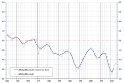 French government borrowing (budget deficits) as a percentage of GNP, 1960–2009.