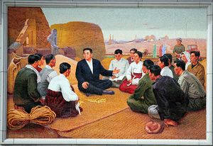 Mural at the Ch'ongsan Cooperative Farm memorializing Kim Il-sung and the Ch'ŏngsan-ni Method.