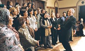 بوش يضحك مع ناشطات سياسيات عربيات في البيت الأبيض.