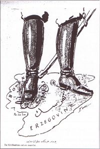 كاريكاتير عثماني حول ضم البوسنة والهرسك، بعنوان ساخر: "تقدم الحضارة في البوسنة والهرسك"
